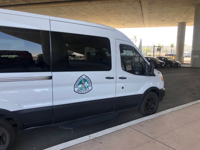 The flight was smooth and short, only about 2 1/2 hours or so. Upon landing in San Diego the first thing that hit us was the heat – it was only April, but temps were in the low 80’s. We filled up our water bottles in the airport, transferred our “hazardous” stuff like hiking poles from our checked bag to our backpacks (which we carried on) and took the free shuttle to the Old Town Transit Center. At that point I realized I didn’t transfer my small Swiss army knife from the checked bag, but figured I could get another knife on the trail.